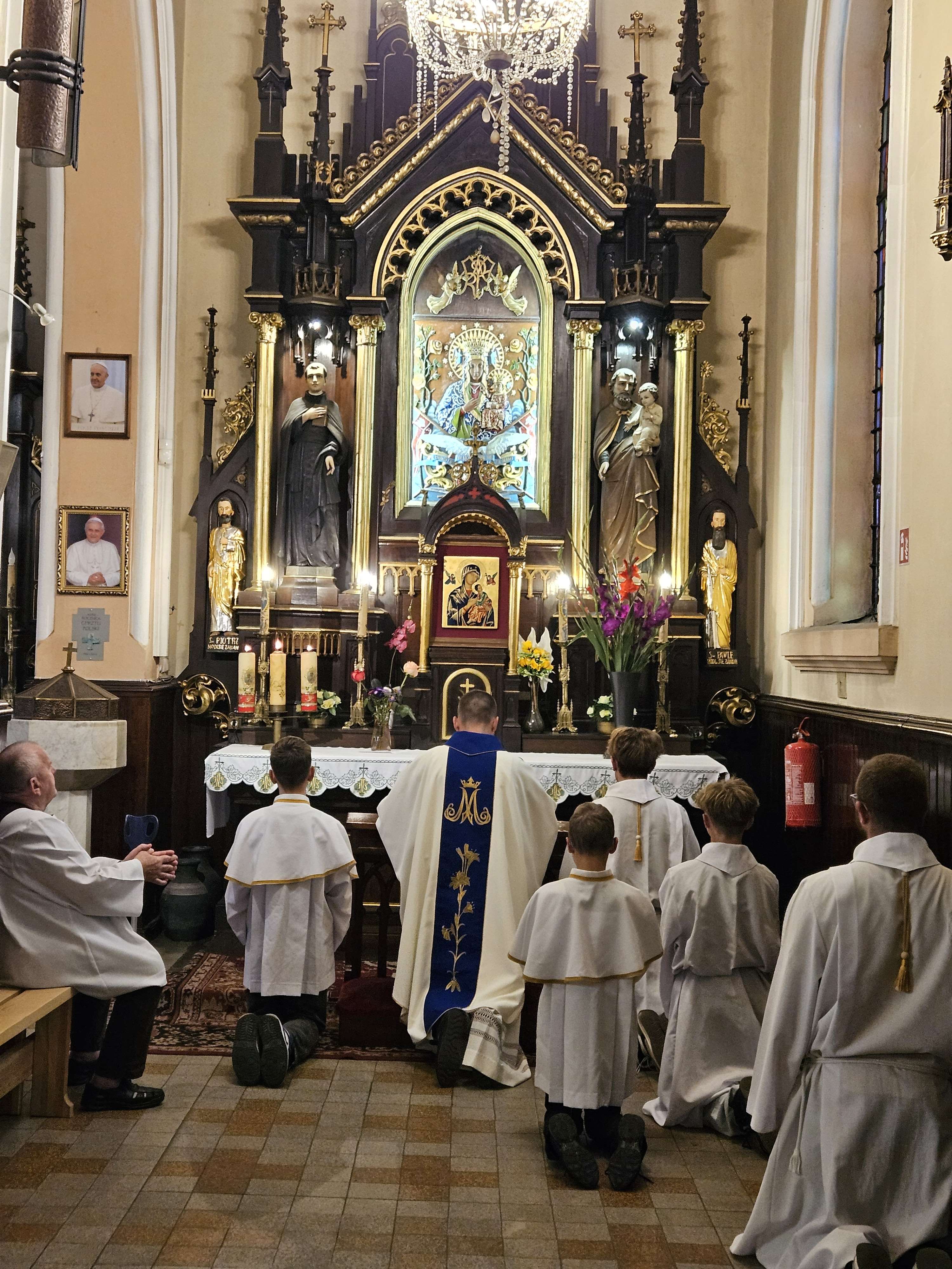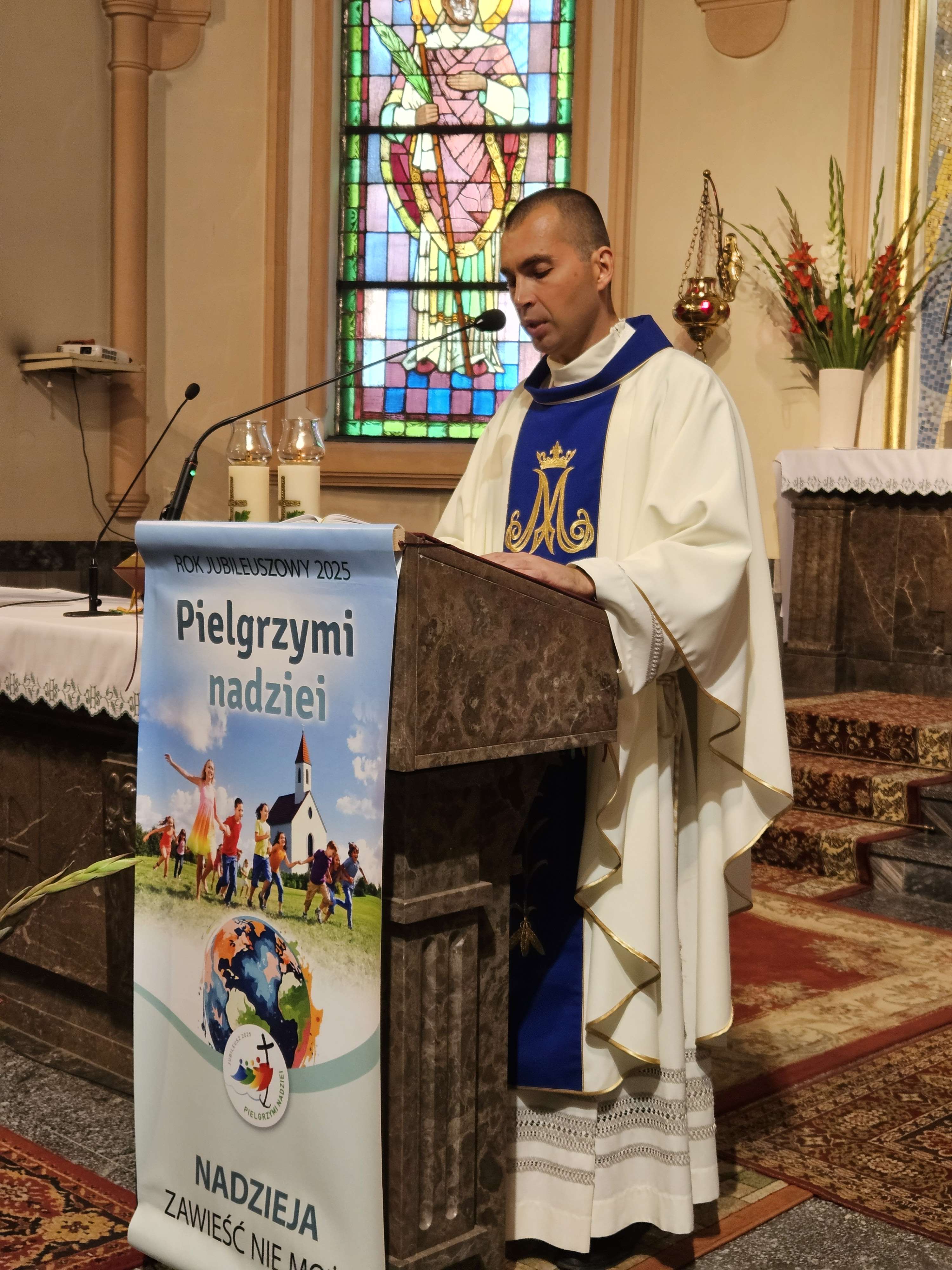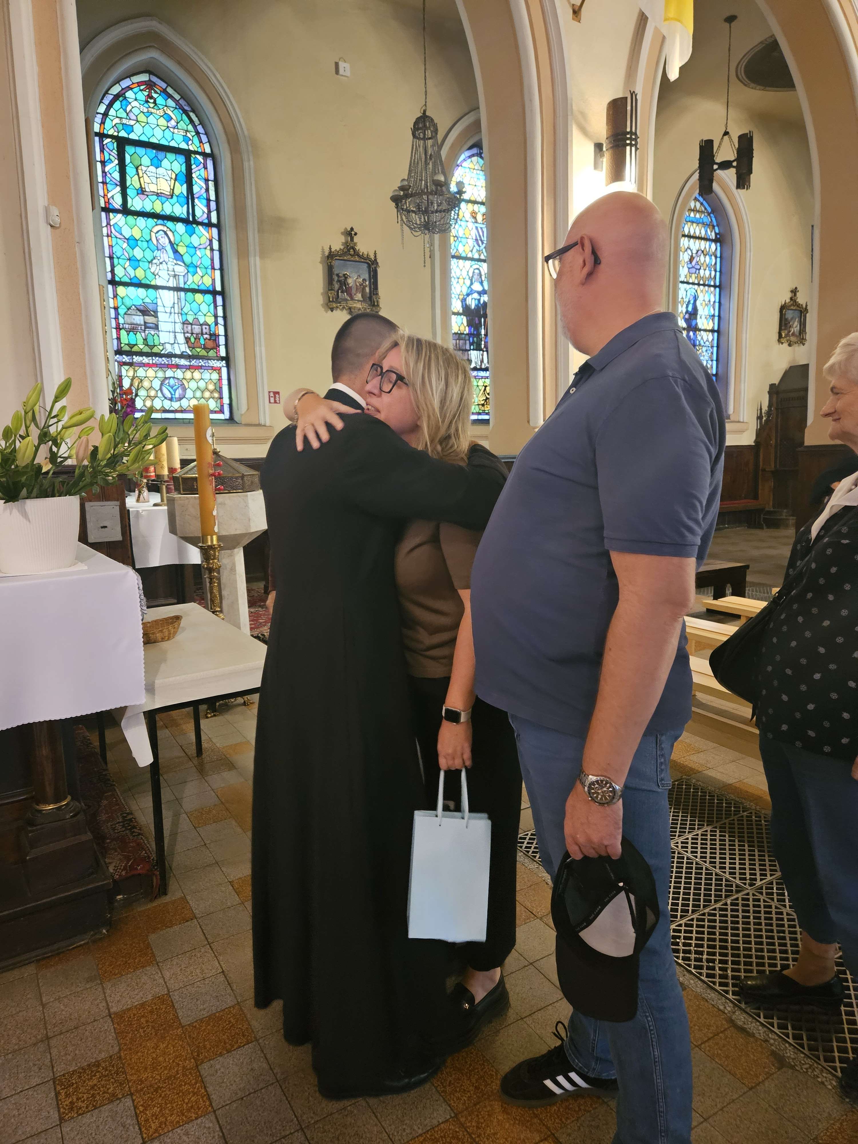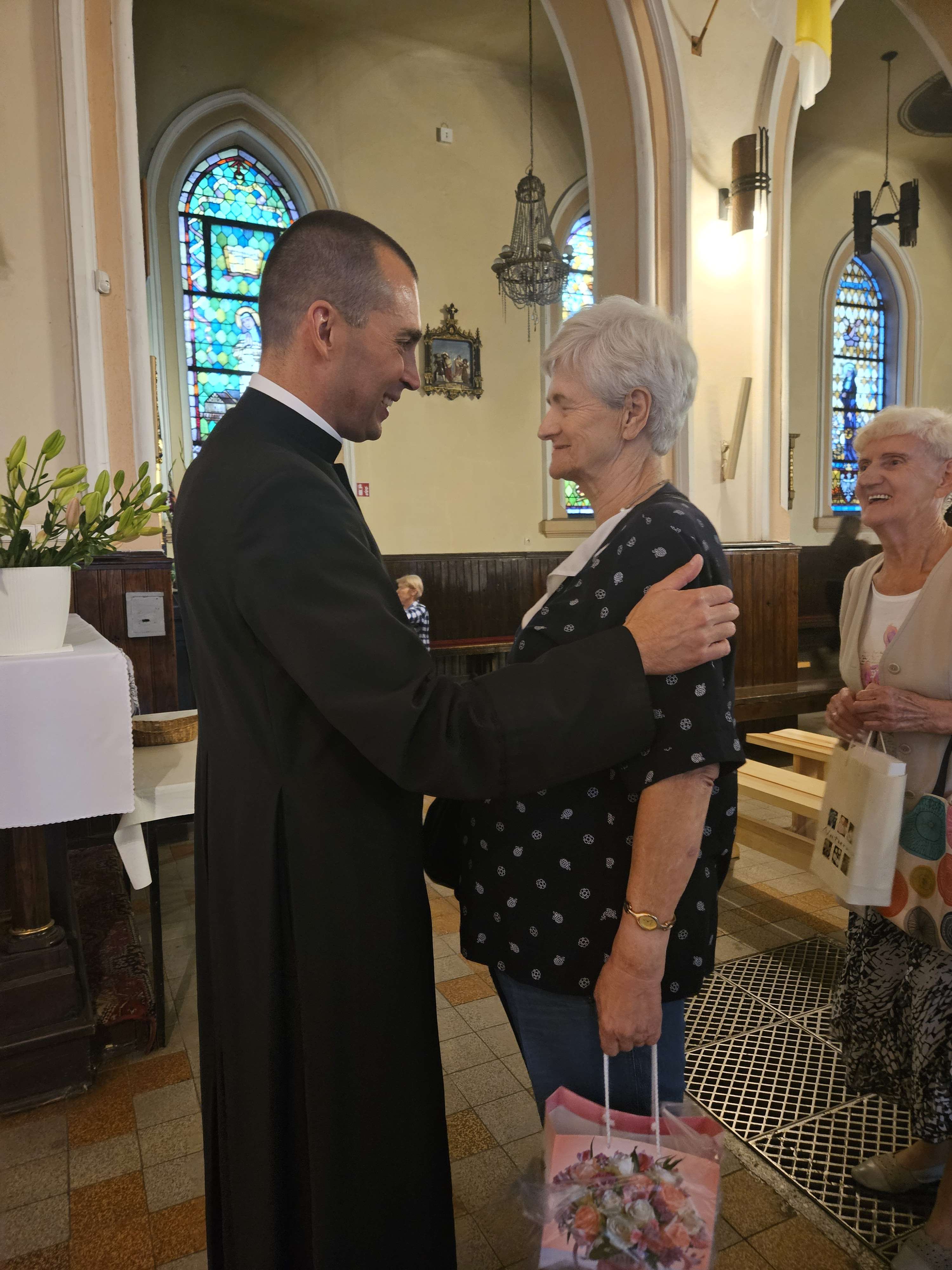 Środa, 27 sierpnia 2025 roku, była dla naszej wspólnoty dniem szczególnym. Tego dnia przeżywaliśmy drugą Mszę Świętą dziękczynną za 10 lat posługi księdza Kamila w naszej parafii. Podczas Nowenny do Matki Bożej Nieustającej Pomocy ksiądz Kamil powierzył swoją dalszą drogę kapłańską Jej matczynej opiece. Szczególnym momentem było pożegnanie przygotowane przez Parafialny Zespół Caritas, którego ksiądz Kamil był wieloletnim opiekunem. W imieniu całego zespołu, ciepłe słowa wypowiedziała pani prezes Alinka Wiatr, która 10 lat temu witała księdza w naszej parafii. Nie zabrakło również wzruszających chwil, gdy parafianie składali księdzu Kamilowi życzenia, wyrażali swoją wdzięczność za jego pracę i okazywali ogromne wzruszenie.